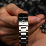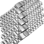 These bracelets contain 14 solid bracelet links and come in a choice of 6 different buckle styles. Solid End Links exactly fit Marathon Diver’s Watches. This bracelet has a superior floating double screw link system and a locking buckle for extra security, as well as a diver's extension hidden under the clasp. The Marathon Watch Stainless Steel Bracelet is adjustable by using the 5 micro-adjustments on the clasp or by removing up to 6 links. Available in 180mm or 205mm lengths. The Marathon Stainless Steel Bracelet is similar in quality to the traditional Rolex Oyster bracelet of the 1970s and 80s. These are not Chinese H-link junk others are trying to pass off as suitable for a Swiss-made Marathon timepiece.