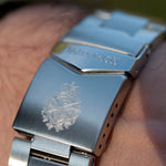 They contain 14 solid bracelet links and come in a choice of 3 sizes and 8 different buckle styles. Solid End Links exactly fit Marathon Diver’s Watches. This bracelet has a superior floating double screw link system and a locking buckle for extra security, as well as a diver's extension hidden under the clasp. The Marathon Watch Stainless Steel Bracelet is adjustable by using the 5 micro-adjustments on the clasp or by removing up to 6 links. Available in 180mm or 205mm lengths. The Marathon Stainless Steel Bracelet is similar in quality to the traditional Rolex Oyster bracelet of the 1970s and 80s. These are not Chinese H-link junk others are trying to pass off as suitable for a Swiss-made Marathon timepiece.