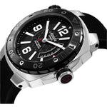 - Water-resistant to 100 ATM/1000 meters/3280 feet, Black rubber strap, Pin buckle