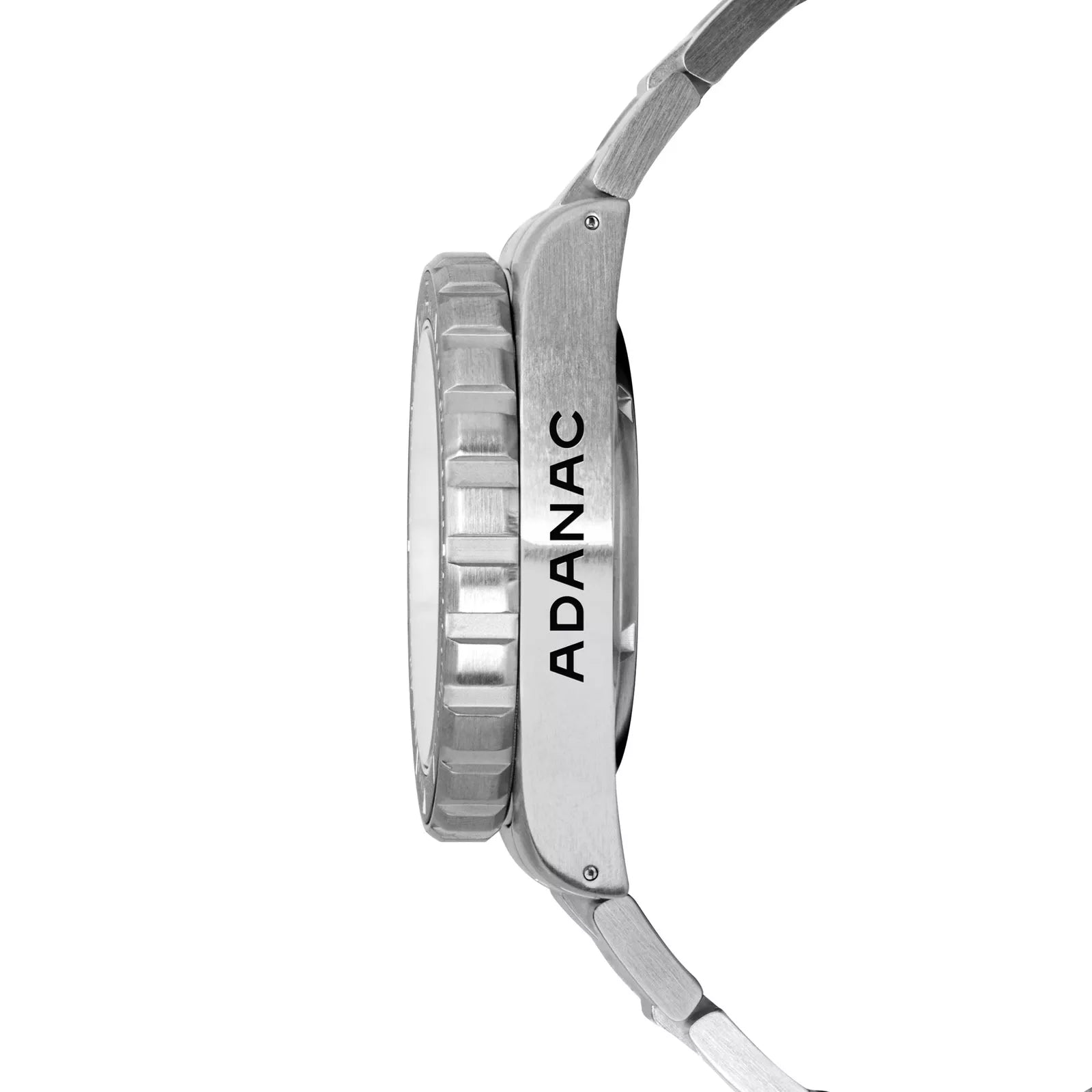 Designed in Canada and Swiss-made for premium precision, the ADANAC Arctic Red Maple GSAR features a 26 Jewel Sellita SW200-1 movement with Incabloc shock absorber. Standard to the GSAR Series, this watch is engineered for use by professional Search And Rescue (SAR) technicians and is purpose-built inside and out. The watch includes a 3 piece rubber strap, 316L stainless steel case with a brushed finish, a knurled screw-down crown, and our signature oversized unidirectional 60-minute dive bezel. The ADANAC Arctic Red Maple GSAR is also equipped with tritium gas tubes on all hour markers and the full hand set for constant illumination in low light conditions. Rated for 30ATM, the watch is built to function at depths of up to 300M (1000FT) underwater. Paired with the ADANAC Arctic Red Maple GSAR is our 316L Stainless Steel Bracelet with Maple Leaf Signed Clasp – echoing the Canadian markings of the watch.