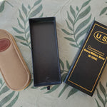 This Benrus 50th Anniversary D-Day Military Watch is a nice mechanical collectible, commemorating the 50th anniversary of D-Day. It is in like new condition, with light signs of wear. No major scratches. New old stock 18mm strap included. The Swiss made strap is OD cotton canvas on the outside and black leather on the inside. Comes with original box, case and papers included. These were manufactured in 1994 to commemorate the 50th anniversary of D-day. Though Benrus actually supplied military wristwatches during Viet Nam war, and into the 1970s, this is a modern representation of military wristwatch from WWII. It is more modern in size being 33x44mm excluding the crown. The dial features Luminova paint which glows well and a 24hr inner track to keep military time. The movement is a high quality 17 jewel Eta 2801 Swiss hacking movement. You pull the crown out and the movement stops so it can be synched with a master time source. This is the same movement that was used in the famous Hamilton WW-G-113 watches from the late 1970s and 1980s. It is also the trusted movement that Marathon Watch Company selected to put in its popular General purpose mechanical military watch. A reproduction mechanical wind-up watch, assembled in the U.S. factory includes a stainless steel water-resistant case, Swiss movement with a full 17 jewel mechanism, and luminous dial and hands. This watch also features the "hack" feature that permits the sweep second hand to stop when the crown was pulled. The watch was issued with an O.D. green tropical weather canvas strap and a canvas/leather field pouch and came in a presentation box.