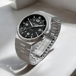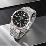 - Bi-layer matte and lacquer black 3D dial with extruded luminous index