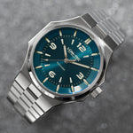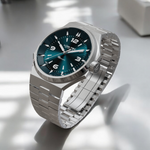 - Bi-layer ocean blue sunburst 3D dial with extruded luminous index