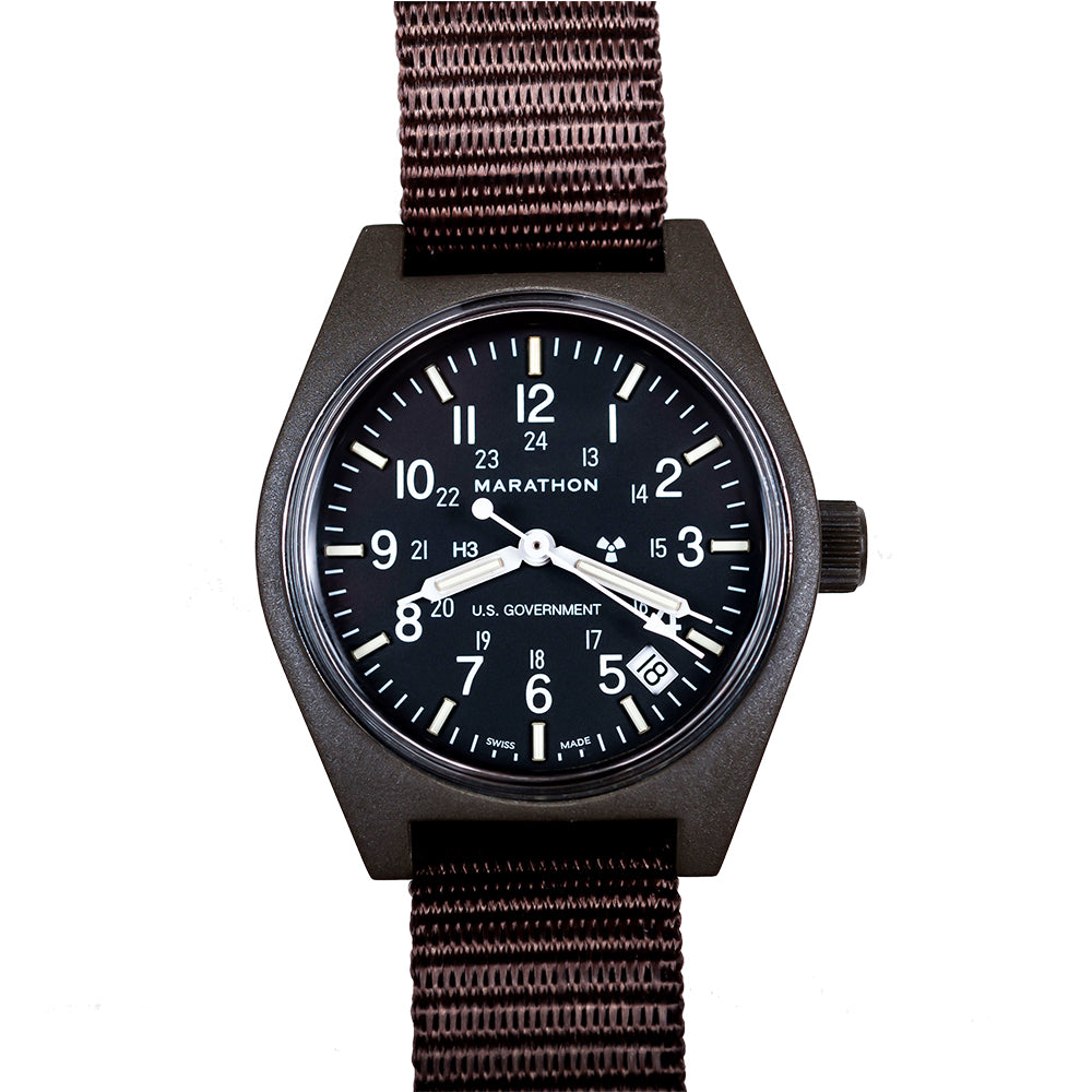 The Marathon General Purpose Quartz with Date and Tritium is a highly accurate watch built to strict military standards under MIL-PRF-46374G, Type I, Class 1. Designed for field use by infantry or other military personnel, the General Purpose Quartz is built to withstand the needs of infantry, as well as civilians looking for a perfect casual watch.