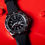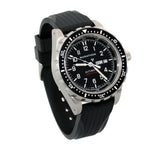 New, current production, Type II, Diver's Automatic Jumbo Day Date with Tritium. The JDD Military Dive Watch is a bilingual extra large dive watch with a day/date function in both English and French. Designed for use by Search and Rescue (SAR) divers, the Large Bilingual Diver’s Automatic watch is a reliable and accurate military watch that is designed for durability and functionality in a variety of conditions and to withstand the rigours of military operations. Includes 3-Piece Rubber Strap Kit and Tactical Grade Case. Full 2 year Manufacturer's Warranty. NSN: 6645-21-886-8975