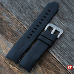 New for 2025! Very comfortable, high quality, custom-fit curved upgrade FKM rubber strap in black, 22mm width, with stainless steel buckle. Precision-molded for a seamless fit with the Combat B, RR, 400M Series, and 350M models. Anti-static formulation resists dust and lint, offering lasting clean appearance. FKM construction ensures excellent durability, chemical resistance, and long-term flexibility in all conditions.