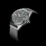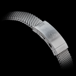 The OW M-110 has an optional heavy-gauge, stainless steel mesh bracelet with reinforced ends and a hand-brushed finish. A great amount of care has gone into the development of this new bracelet, in line with OW’s historical approach. As well as being virtually indestructible and fit for professional use, we believe it is our most comfortable bracelet yet. The sturdy milled and engraved clasp is extendable up to 22 mm, and a double pusher-release system provides extra security against accidental opening.