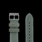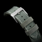 The OW M-110 AS comes on a unique infantry-green, dual-ply fabric strap. This is crafted from reclaimed military-grade, double-twill hemp canvas, procured directly from the Swiss Army’s unused surplus supply. This highly durable material, more resilient and lightweight than cotton, was originally intended for a variety of military applications such as the legendary Armée suisse Pioneer backpacks and all-weather skins for vehicles. Manufactured in the mid-50s – around the same time as Ollech & Wajs was founded – the fabric was made to last 100 years in the field. It has plenty of fight left in it yet, despite being over 60 years old. The heavy-duty, two-tone fabric is lined for comfort with 100% natural soft leather, sourced and hand-stitched in Italy. The straight-cut edge of the strap is designed to fray subtly with everyday wear, giving it extra vintage character. The strap is finished with a brushed stainless steel thorn buckle, signed ‘OWZ 1956’. An exclusive opportunity to own and wear a watch with history woven into it.