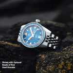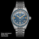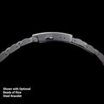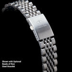 The OW Ocean Graph has an optional OW S-type Mark II beads-of-rice, stainless steel bracelet. This bracelet was inspired by those found on past Ollech & Wajs models of the 1960s. Its links are individually machined in a solid block of 316L stainless steel, before being carefully brushed, assembled, and screwed by hand. This process prevents the usual stretching common among pressed steel bracelets, ensuring both longevity and comfort to the wearer. The bracelet‘s double-lock deployant clasp prevents accidental opening while remaining easy to handle for divers.