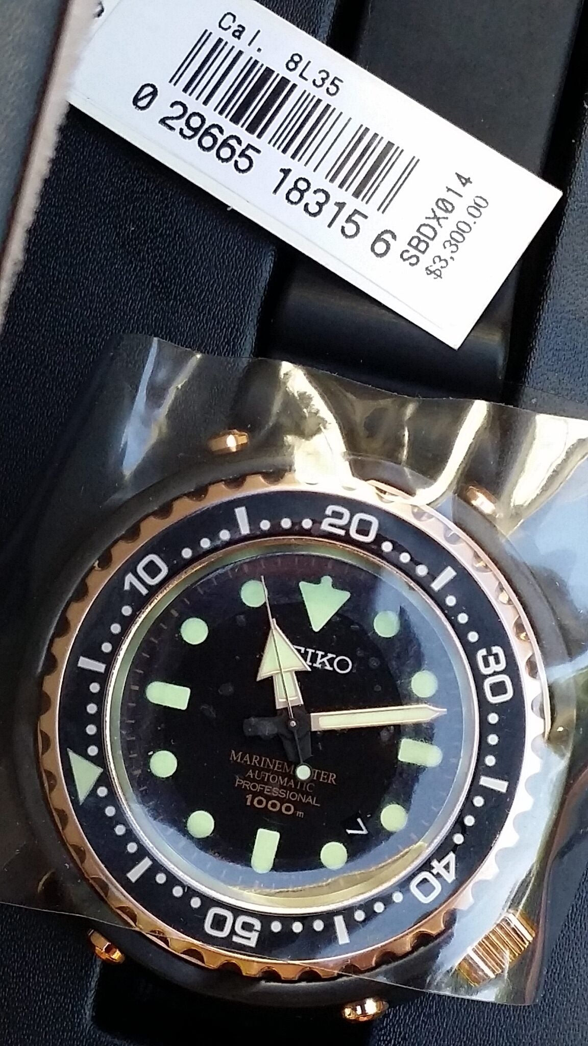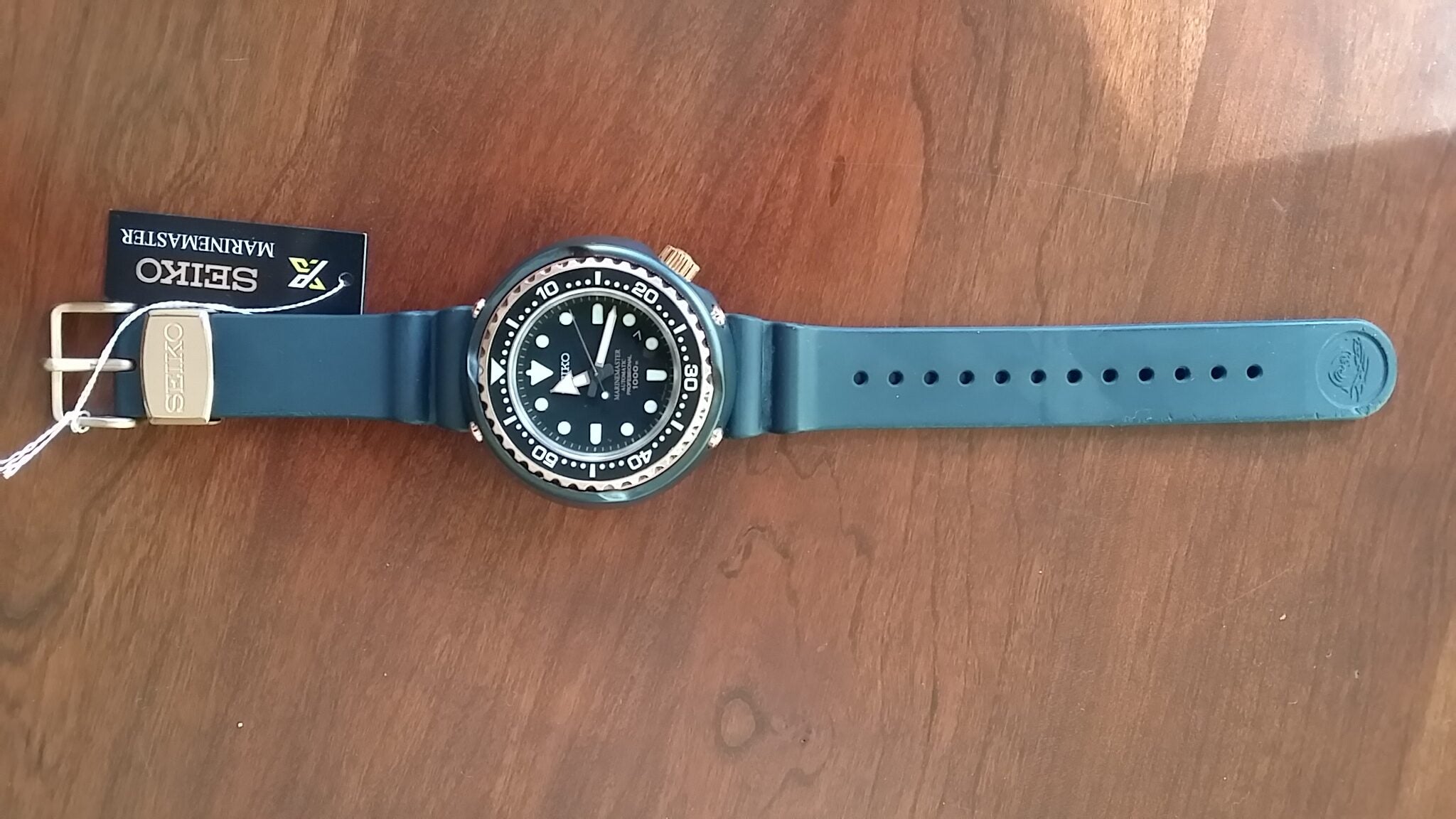 This SEIKO PROSPEX SBDX014G Marinemaster was taken on a trade and was purchased in November, 2018 by a meticulous collector and worn perhaps a half dozen times with no water exposure.   The remainder of the manufacturer's 3-year warranty still in place since this is from a Seiko USA watch supplied by an authorized US Retailer.