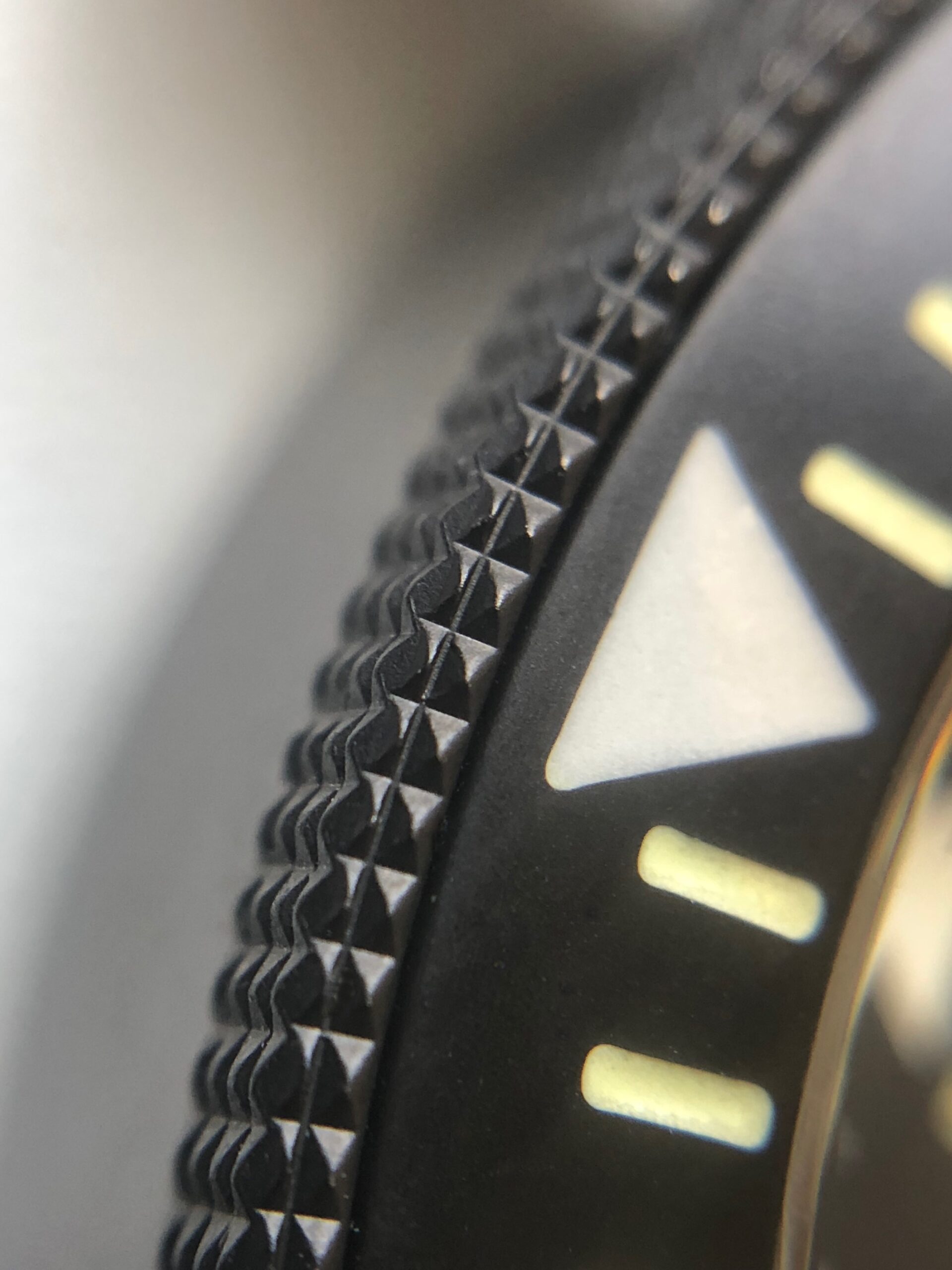 Case back: The solid and beautifully detailed case back is bolted down for a perfect seal with multiple surfaces to minimize the contact patch with the wrist in warmer conditions.