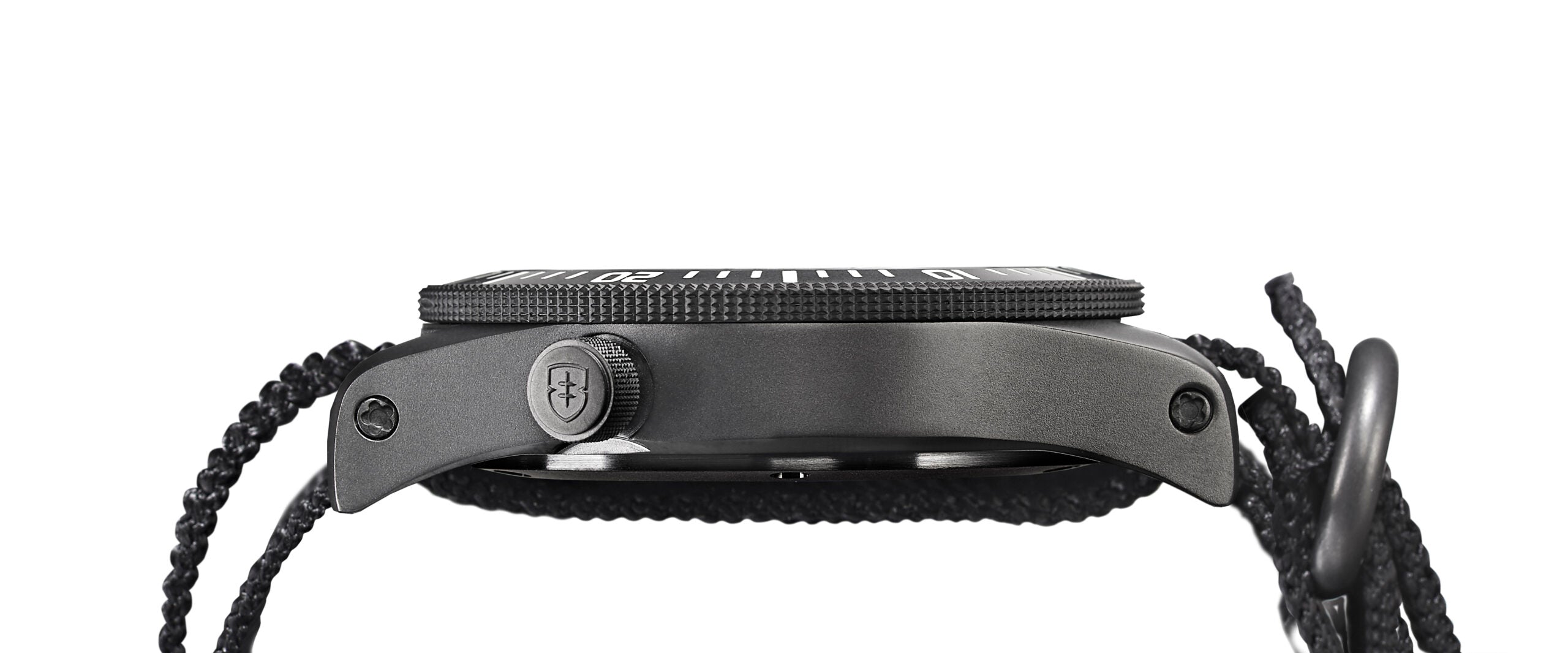 Movement: Swiss made jeweled Ronda 715 Quartz with date indication and End of Life (EOL) battery indicator Shock protection: Patented system -- Swiss movement is housed inside a unique steel housing, suspended on a series of elastomer dampers to give a high level of shock protection. All watches exceed ISO1413 standard for shock resistance and this is proven by subjecting a few watches in each production run to striking from a 3kg pendulum mallet that applies a force of 5000G at the point of impact!