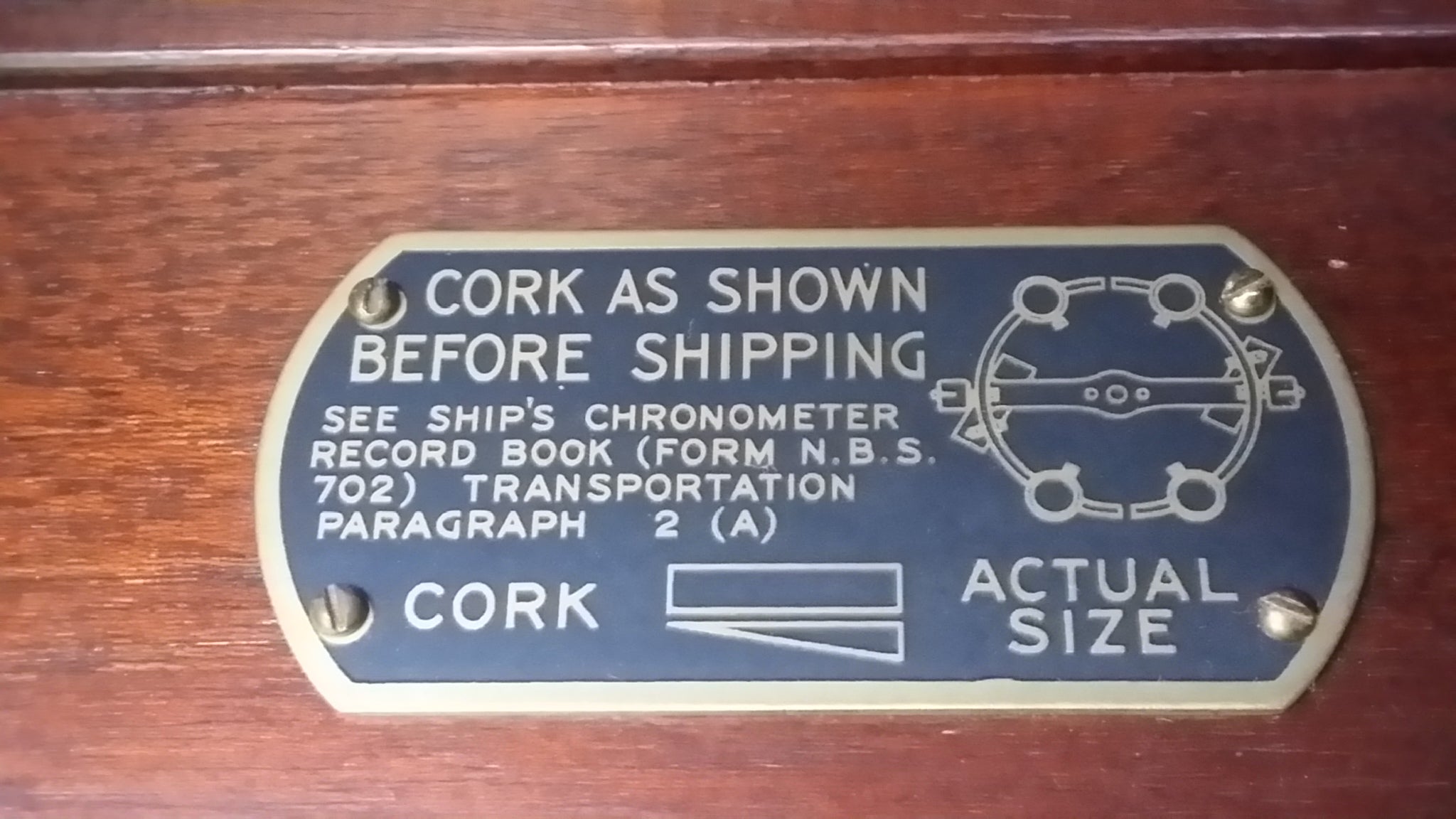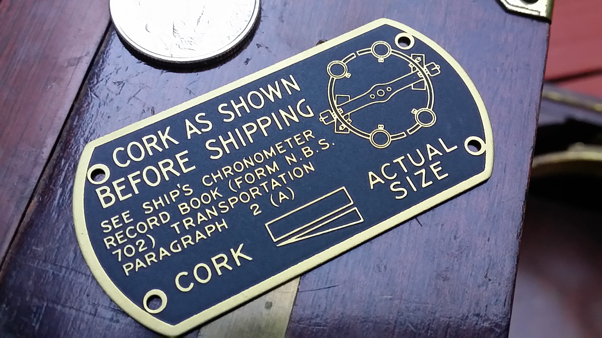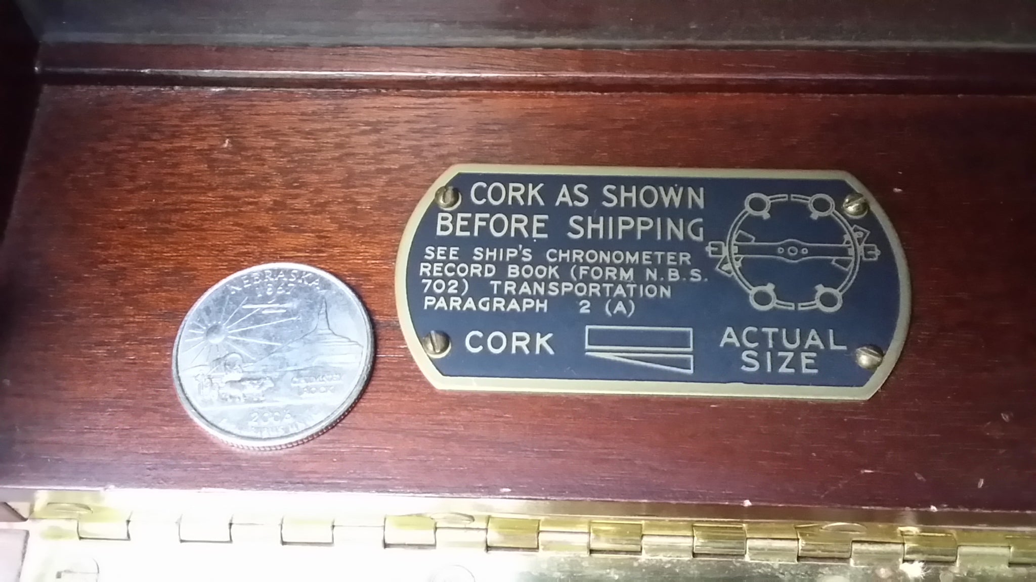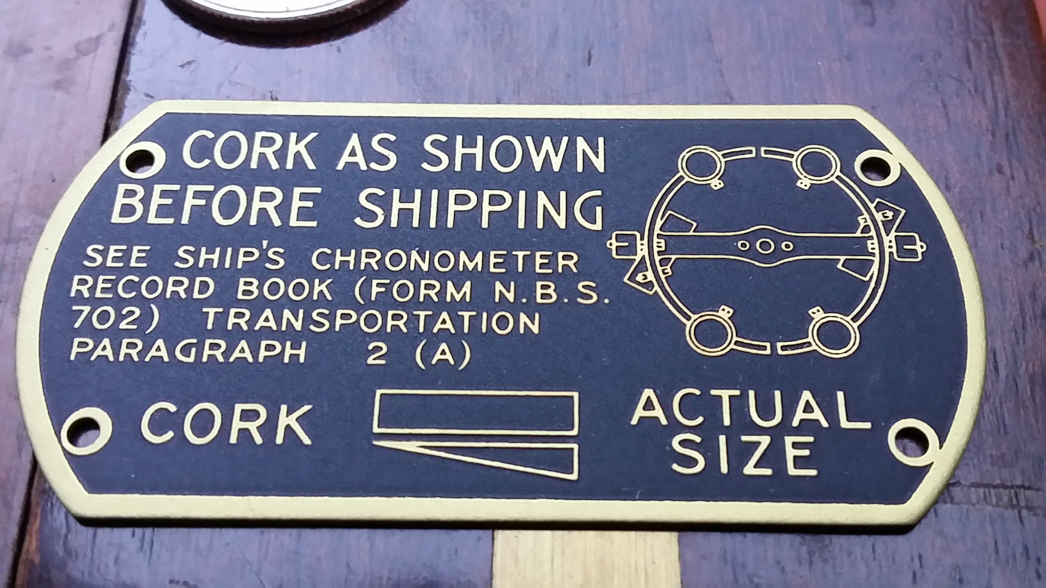 US Navy Marine Chronometer "Cork As Shown" Brass Plaque