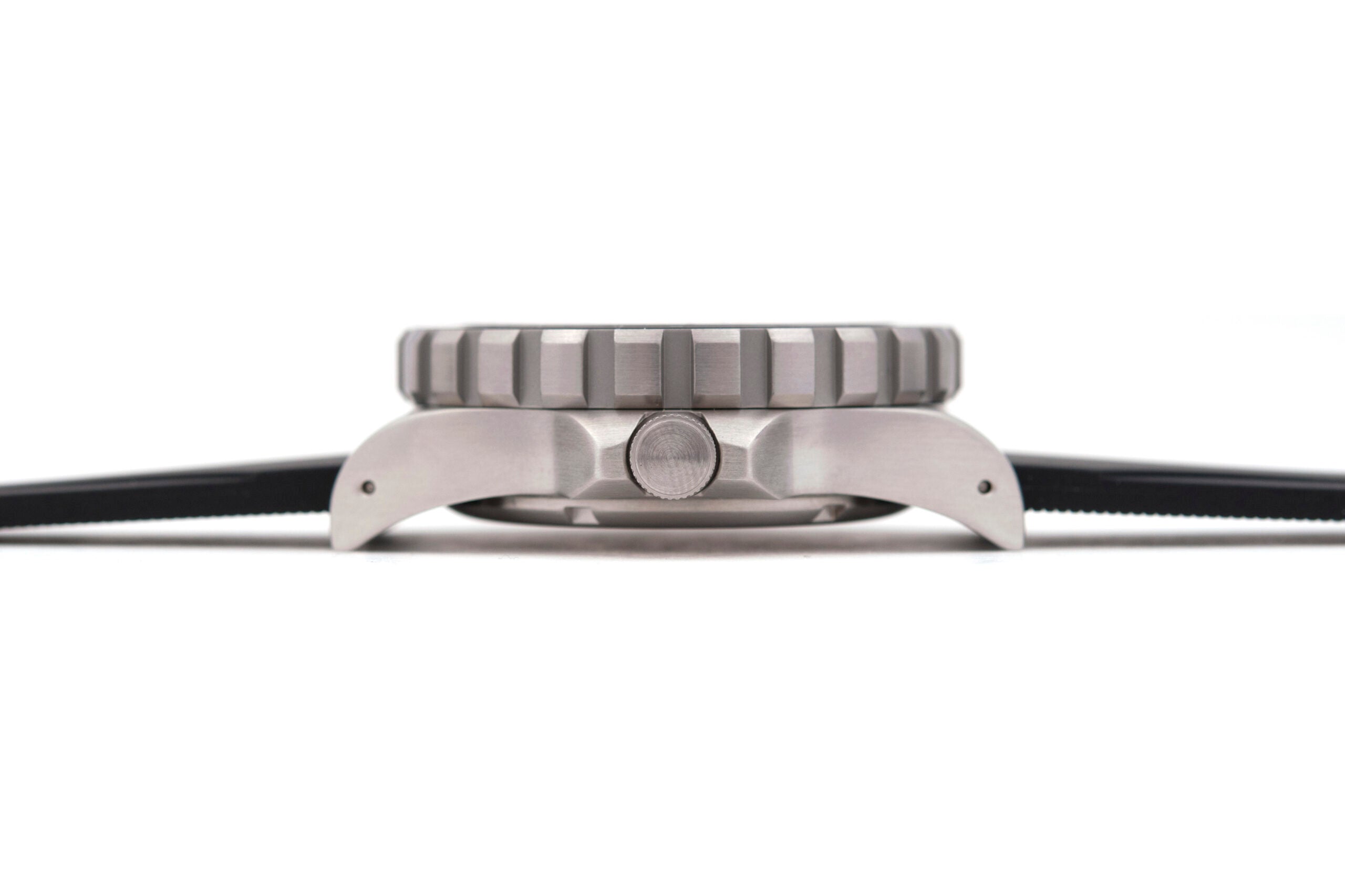 The Marathon JSAR is water resistant down to 30 ATM – 300 meters (1000 feet) underwater. Made from 316L surgical grade stainless steel, the JSAR is a hefty, purpose-built watch that will not let you down on any adventure you may take it. The glass of the Marathon JSAR is in fact not glass, but a synthetic sapphire which will resist scratches, and is coated with an anti-reflective coating to ensure maximum dial legibility.