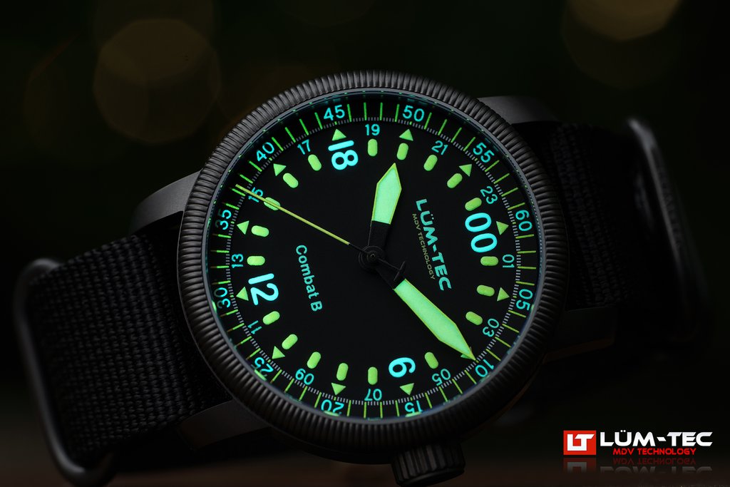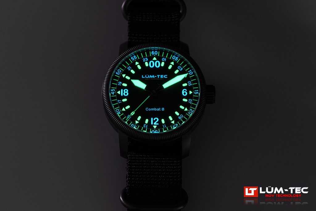 Every LUM-TEC watch features exclusive MDV Technology. This is a special 8 layer application of ultra bright glowing Super-Luminova photo-luminescent material. MDV hands and dials are extremely visible in all light conditions.