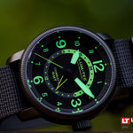 MDV® luminous Technology custom developed grade X1 Swiss 208LE (vintage patina radium color with high luminous reactivity) on dial and hands