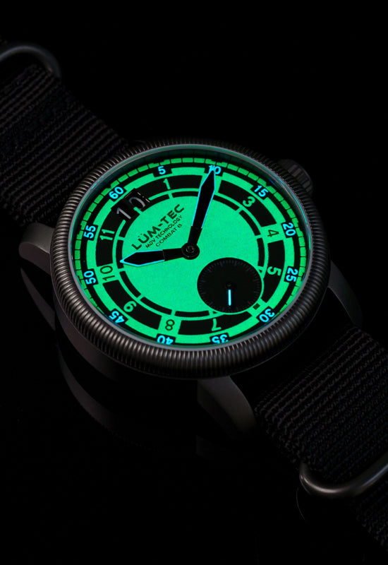 Every LUM-TEC watch features exclusive MDV Technology. This is a special 8 layer application of ultra bright glowing Super-Luminova photo-luminescent material. MDV hands and dials are extremely visible in all light conditions.Experience the ultimate wristwatch.