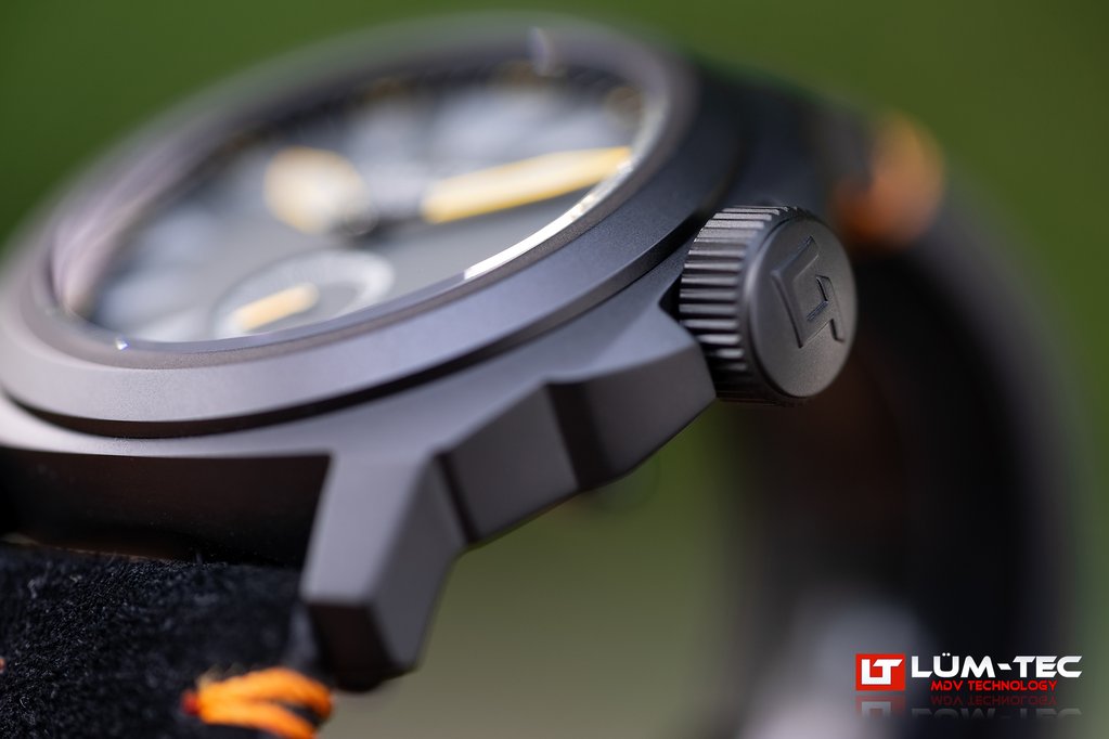 - MDV® luminous Technology X1 grade multi-layer gray phantom lume with orange on dial and hands