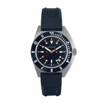 Finished in a striking blue colourway, the Blue Yonder is colour-matched with our new blue FKM 3-piece rubber strap kit and comes with a complimentary blue travel pouch.