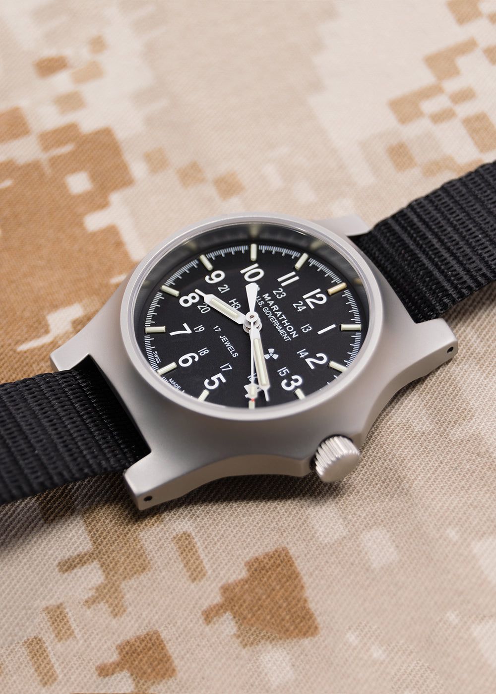The Marathon General Purpose Mechanical Watch in Stainless Steel (WW194003SS) is inspired by the historic Marathon GG-W-113 field watch, but also fulfills the latest government specified military standard of MIL-PRF-46374G, Type I, Class 1.