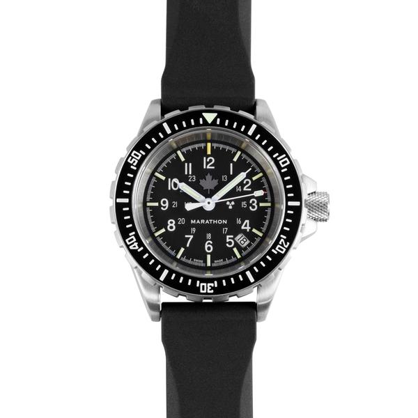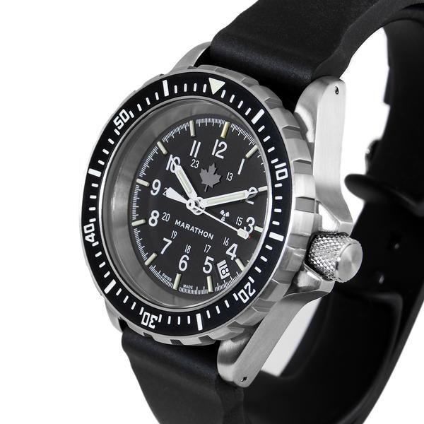 The Marathon Search & Rescue Diver’s Automatic is a dive watch built to ISO 6425 standards. Designed for use by Search and Rescue (SAR) divers, and issued to Canadian military divers, the Diver’s Automatic Maple Leaf is a watch built to withstand the most extreme of conditions. The Diver’s Automatic is also known as the Government Search and Rescue (GSAR).