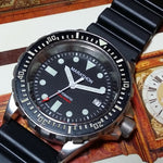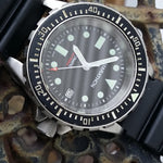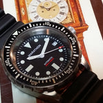 This is the original SAR which was rated for 1000 foot submersion. It is a nice sized watch. The movement is an ETA 2824-A2. The crystal is sapphire - 2.8mm thick x 30.50mm diameter. The case is cut from solid 316L stainless steel and is approximately 46.0mm in diameter. The unidirectional bezel diameter is 41.10mm and case height is 13.85mm.