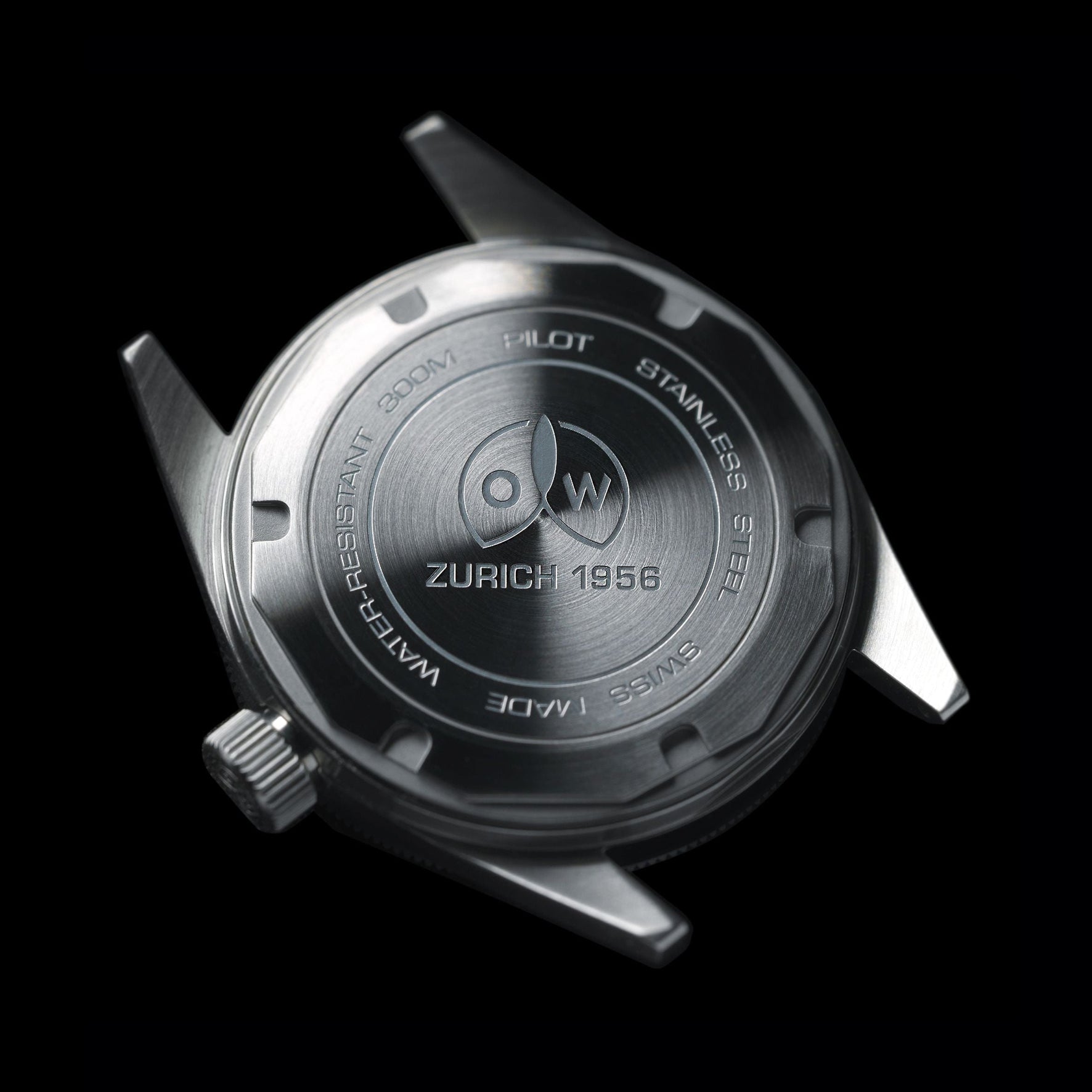 In keeping with Ollech & Wajs’s long-held reputation for extreme water resistance, the P-104 boasts a depth rating of 300 m / 30ATM – impressive for a dive watch, let alone a pilot’s watch. The watch is assembled and adjusted in Haute-Sorne in the Swiss Jura, at the historic workshop that has served OW for over 60 years.