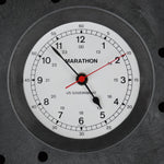 US Navy Portable Self-Contained Marathon Marine Chronometer -- From 2003...Last series manufactured ending 200+ year tradition. New old stock example of a scarce US Navy Marine Chronometer manufactured by the Marathon Watch Company, La Chaux-de-Fonds, Switzerland. Background: The US Government asked three suppliers: Marathon, Waltham and Timex to develop a replacement for the famous Hamilton Model 21 mechanical chronometer developed during WWII. This model by the Marathon Watch Company was originally developed in the late 1980s and sold in several contracts in the early 1990s. A final and last contract of this improved model was delivered to the US Navy in late 2003. Original cost was $1500+ for this chronometer. Description: Unit measures 7.5" x 7.5" x 6.5" and was hand manufactured in Switzerland. The heart of the unit is a specially adjusted German Quartz jeweled movement powered by a single AA battery. A capacitor provides power for the unit when the battery is changed. A spare battery compartment is housed internally adjacent to the movement. The unit is housed in a nautical fiberglass molded case with recessed grab handle on the underside to allow easy one handed carrying. The dial is extremely legible with black Arabic numerals on a white background. The unit is signed "Marathon", "US Government" and "Swiss" on the dial. The unit will be supplied sealed in the original government foil packaging. To install the battery, simply unscrew the 12 Phillips head screws (6 on each side), carefully separate the unit and install the new supplied battery in the movement. Alternatively, I can open the unit and install the battery if desired. Guaranteed authentic! Great addition to any chronometer collection.....use as master time source on your yacht or display!