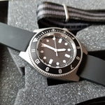Our concept was to produce a watch that the modern US military might have requisitioned if the watch was re-introduced today. We replaced the bi-directional bezel with the modern safety feature of the uni-directional bezel for diving, ensuring that one would always under-estimate the bottom time remaining. The original acrylic crystal was upgraded to an anti-reflective coated sapphire crystal and the monocoque case replaced with a two-piece design that is significantly easier to service.