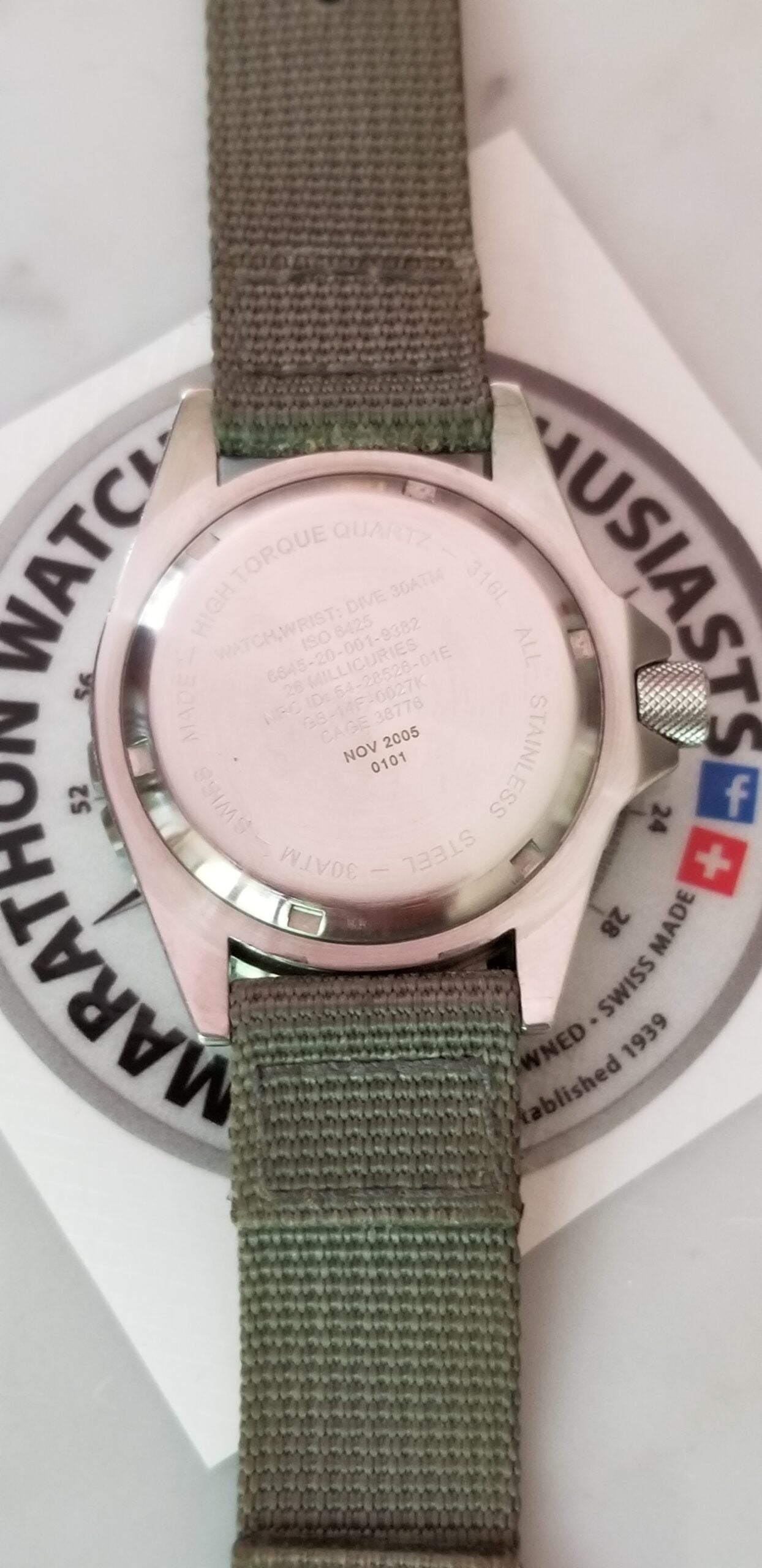 Marathon Pre-owned TSAR: from 2005 contract (SN: 0101), first year of production for this model. Here is an early TSAR that saw actual use in Iraq. As such, it does have signs of handling in the field. It comes with a current issue Marathon box. Over $1200 retail. Get this historical, vintage version for substantially less. As this is now over 17 years old, the tritium tubes glow only faintly but this would make a great everyday watch and can stand up to much rugged use for years to come. The watch was carefully inspected and a new battery was installed.