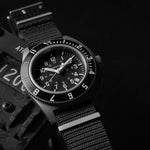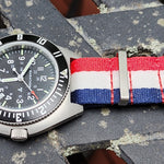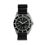 A direct descendant of Marathon’s original Steel Navigator developed in the 1980’s, the 41mm Steel Navigator w/ Date (SSNAV-D) includes many upgrades inside and out. This redesign has been a central focus of Marathon President Mitchell Wien for over five years, working in tandem with Marathon’s talented team of watchmakers based in La Chaux-de-Fond, Switzerland and manufacturing in accordance with government requirement NSN: 6645-01-698-4275.The steel bi-directional bezel has also seen an increase in thickness, creating a larger surface to grip while wearing flight gloves. Inset-painted indices have also been added to the bezel, enhancing the legibility and durability of the markings.The Steel Navigator w/ Date now includes an impact-resistant synthetic sapphire crystal, representing an upgrade from the original model’s hardened plexi-crystal. This, coupled with our improved crystal-retention system, allows the watch to withstand extreme changes in air pressure – necessary for the watch’s use by combat pilots at high altitudes. This crystal also provides unparalleled clarity and an increased viewing angle.The watch is built from solid 316L surgical-grade stainless steel and features a screw-down crown, making it operational even when submerged to 10ATM (100m/300ft). This increased water resistance was implemented due to the requirement for modern pilots and paratroopers to be capable of using the watch in any environment. The re-engineered case stays true to the iconic asymmetrical design of the original Navigator, now including enhanced tapering of the lugs. This more curved shape provides a comfortable fit and makes the Steel Navigator w/ Date ideal for all-day wear. The lugs are also fully drilled, simplifying quick strap changes and allowing the users the choice of many different accessory styles.Self-contained tritium gas tubes are included on the hour markers, and minute/hour hands, ensuring constant visibility in low-light environments. Tritium tubes are self-illuminating, containing an isotope of hydrogen that won't dull down over time like standard photoluminescent paint, meaning the watch will remain fully legible at all hours. On the caseback is Marathon’s signature easy-access battery hatch – a critical element that ensures easy battery changes for the end user. As with any quartz Marathon wristwatch, the Steel Navigator w/ Date includes an EOL (End-of-Life) indicator which will display when your power supply is running low. Simply use a coin to twist the hatch open, replace your 371 battery, and screw the hatch back down. An improved water-tight gasket on the hatch means no fear of dust or moisture affecting your watch movement once the hatch has been fully re-secured. The caseback also exhibits brand-new markings, displaying the required spec and model information plus a nod to the North with the inclusion of the Canadian Maple Leaf.