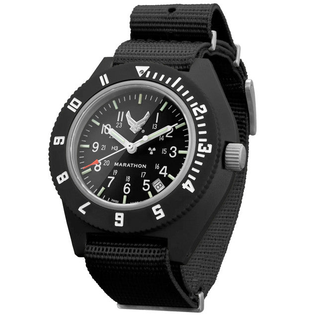 The Marathon Navigator Date USAF is a highly accurate watch built to strict military specifications under MIL-PRF-46374G. Designed for pilots, parachutists, and law enforcement, the Military Navigator Pilot's Quartz is made to withstand the many challenges that are faced in a professional or everyday environment.