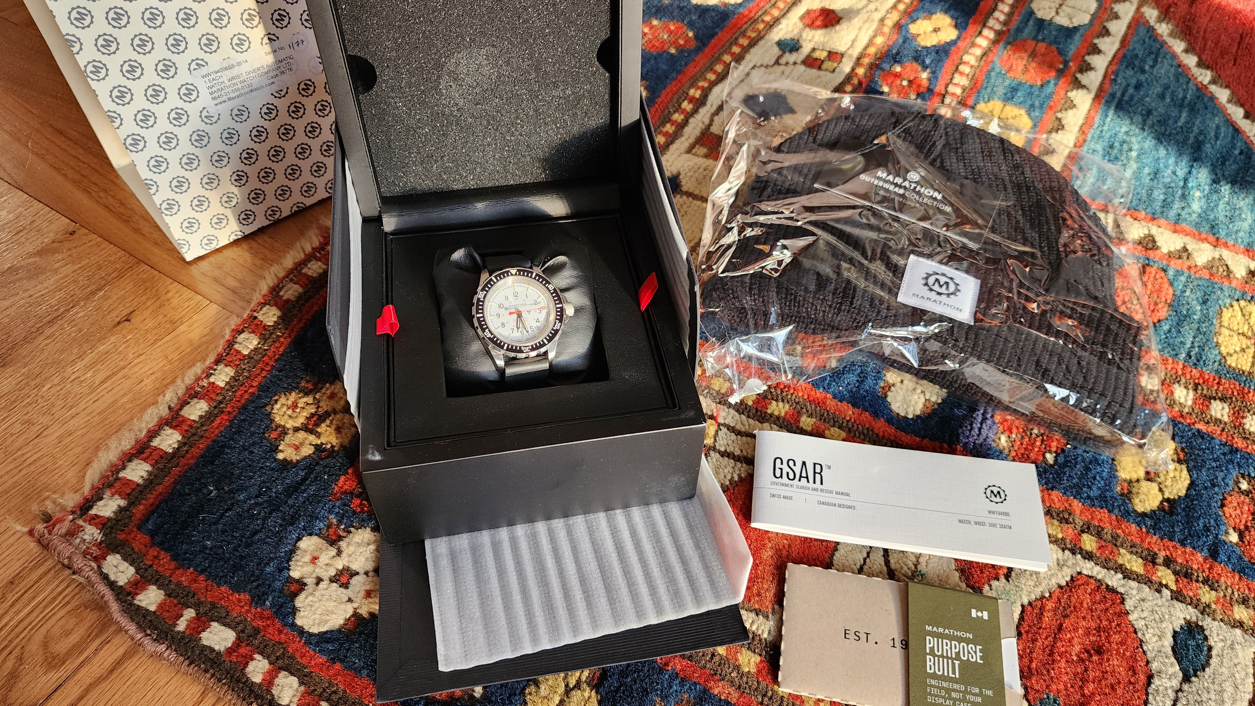 Complete with box, papers, original receipt and Marathon knit cap.