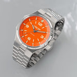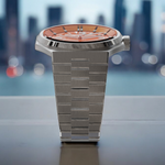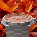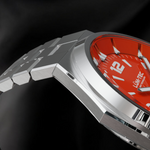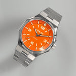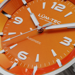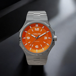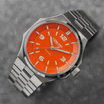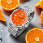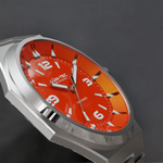 - Bi-layer pearl orange lacquer 3D dial with extruded luminous index