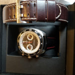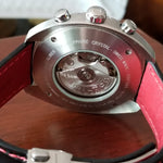The H-31 is a powerful automatic chronograph movement based on the Valjoux 7750 featuring an extended 60-hour power reserve, making it perfect for the demands of the sportiest of models. With an H pattern design on the oscillating bridge, there’s no mistaking who made this movement. The extended power reserve was done by lowering the frequency of the balance wheel to 3 versus 4Hz, and increasing the size of the mainspring barrel (as Hamilton did on the famous model 22 chronometer deck watch during WWII). Pictures are of the actual watch. The watch includes the boxes, original warranty card from an authorized retailer in Quebec (from 2016, expired), instruction book, a black padded leather strap with red stitching and adjustable deployment clasp (pictured on watch, retail over $95) as well as a second original Hamilton strap in chocolate brown leather with white stitching is included. Enjoy the classic look of the Hamilton Pan Europ for many years!
