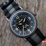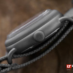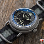 - Charcoal gray and black stripe nylon military strap with 316L Gunmetal PVD hardware