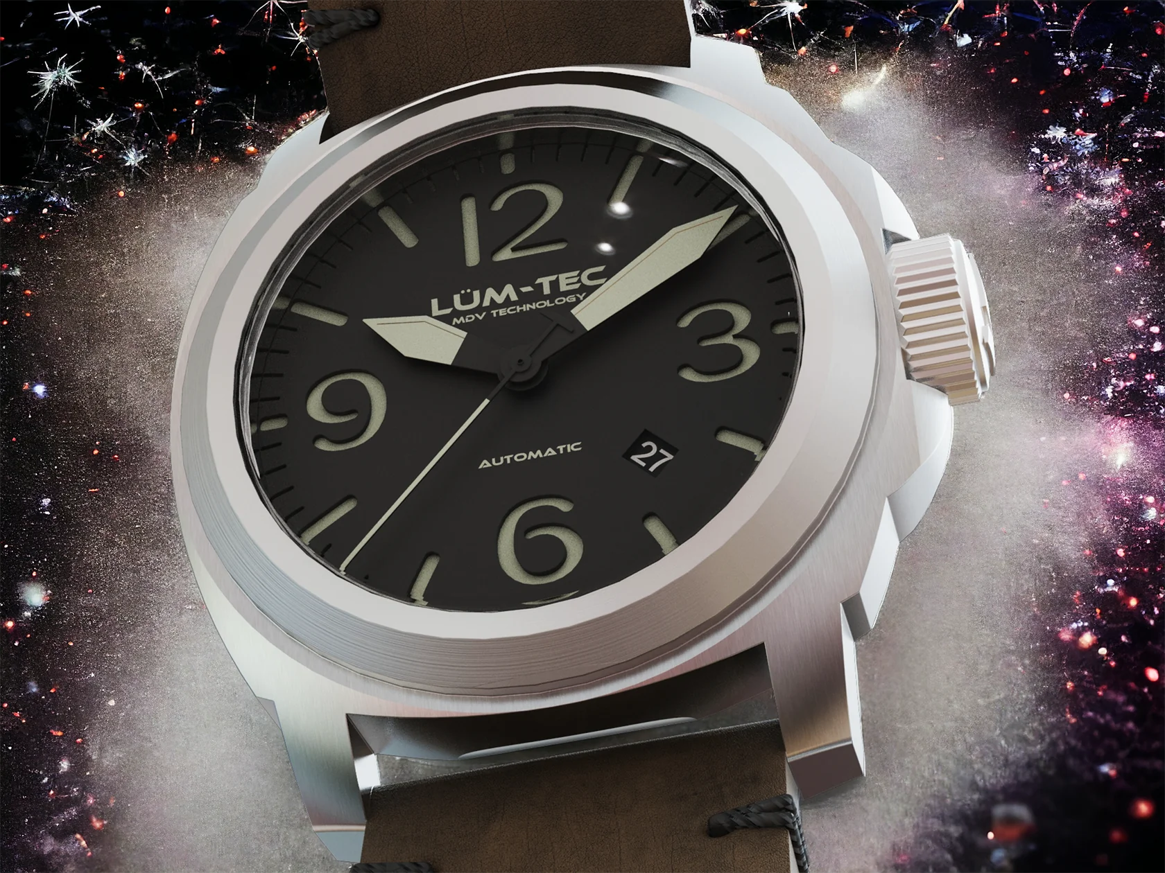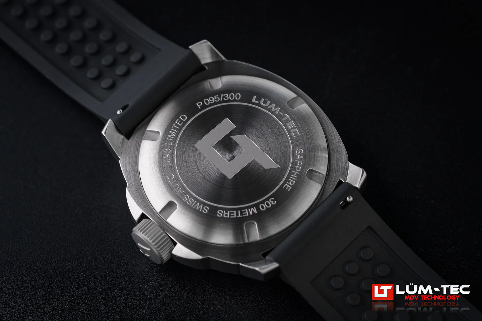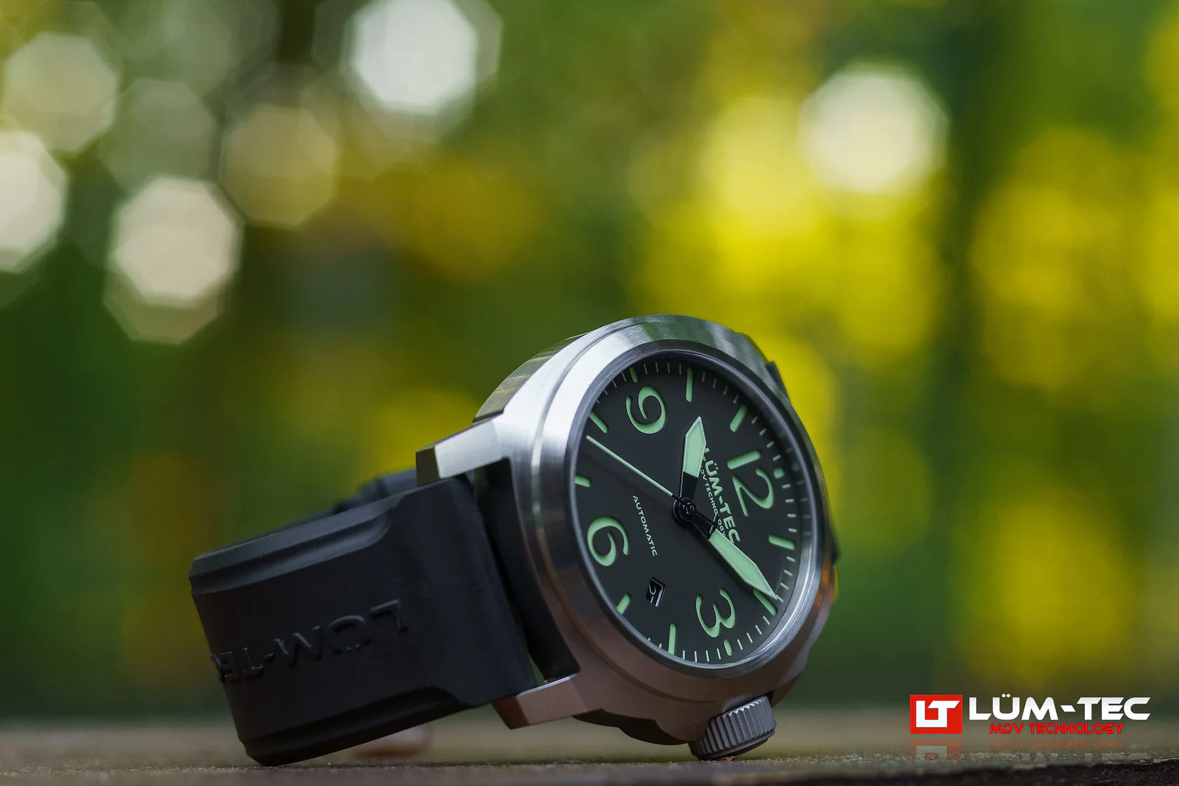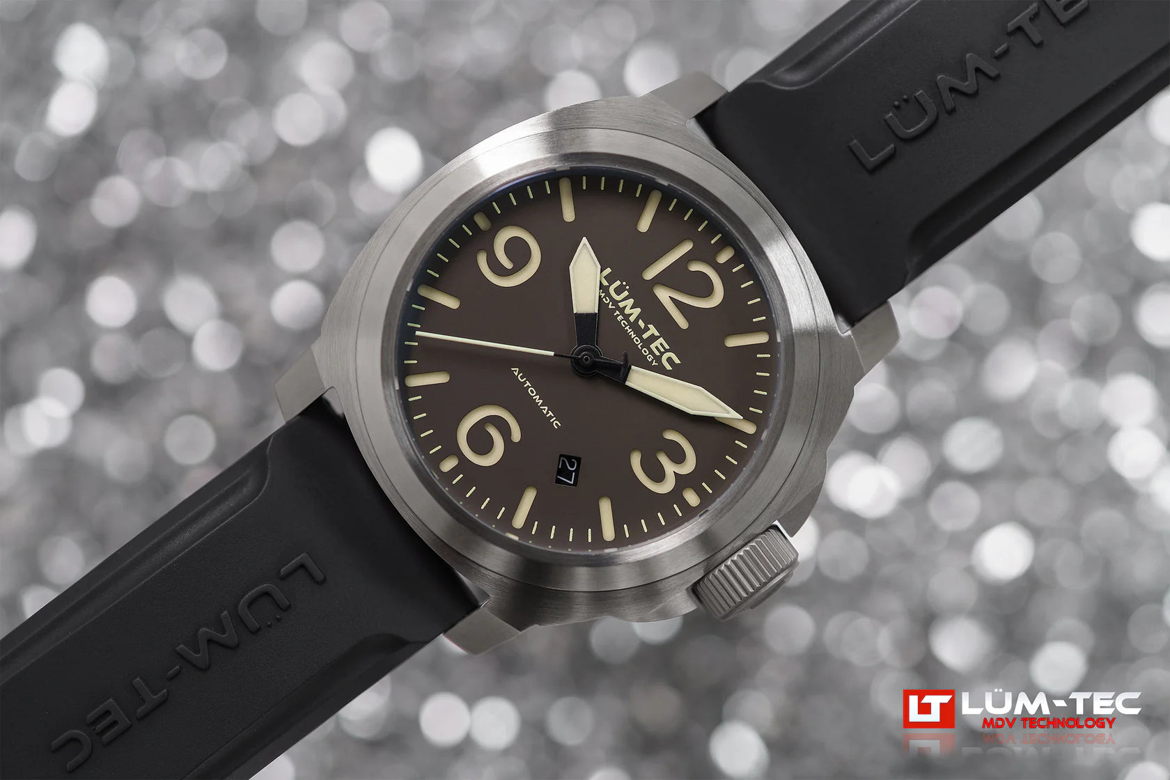 Every LÜM-TEC watch features exclusive MDV Technology, a special 8-layer application of ultra-bright glowing Super-Luminova photoluminescent material. MDV hands and dials are extremely visible in all light conditions, making this watch perfect for red-eye travelers, evening joggers, and casual divers alike.