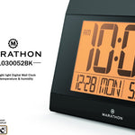 MARATHON CL030052BK Atomic Digital Wall Clock With Auto-Night Light, Temperature & Humidity - Batteries Included