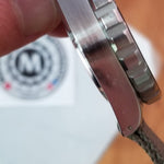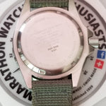 The TSAR is handmade in La Chaux de Fonds Switzerland to guarantee the highest level of quality and accuracy in manufacturing. Inside the TSAR is a Swiss-made, 3 jewel ISA high torque quartz movement. The TSAR guarantees you a reliable and accurate timekeeping experience. The TSAR uses self-contained Tritium gas tubes to ensure constant visibility in low light situations, a gas tube is placed on each hour marker and hands and uses MaraGlo for the 12-hour bezel marker. Tritium tubes are self-illuminating gas tubes that contain an isotope of hydrogen, meaning they will not dull down in brightness like normal photo-luminescent paint which requires an external light source to create a glow. The crystal is sapphire – 2.8mm thick x 30.50mm diameter. The 316L stainless steel case is approximately 46.0mm in diameter. The unidirectional 120 click bezel diameter is 41.10mm and the case height is 13.85mm. Screw down crown is deep knurled. The total weight of the watch head is 93.1 grams. NATO NSN#: 6645-20-001-9382. Individually serial numbered. NOTE: If you'd like a new production version of this TSAR, please go here <-click here The Marathon pre-owned TSAR watch combines military toughness with Swiss Craftmanship in an ISO 6425 certified watch that will get the job done, and look good doing it. The ultimate current special purpose quartz dive watch!Marathon Pre-owned TSAR Diver's Watch WW194007: Early production