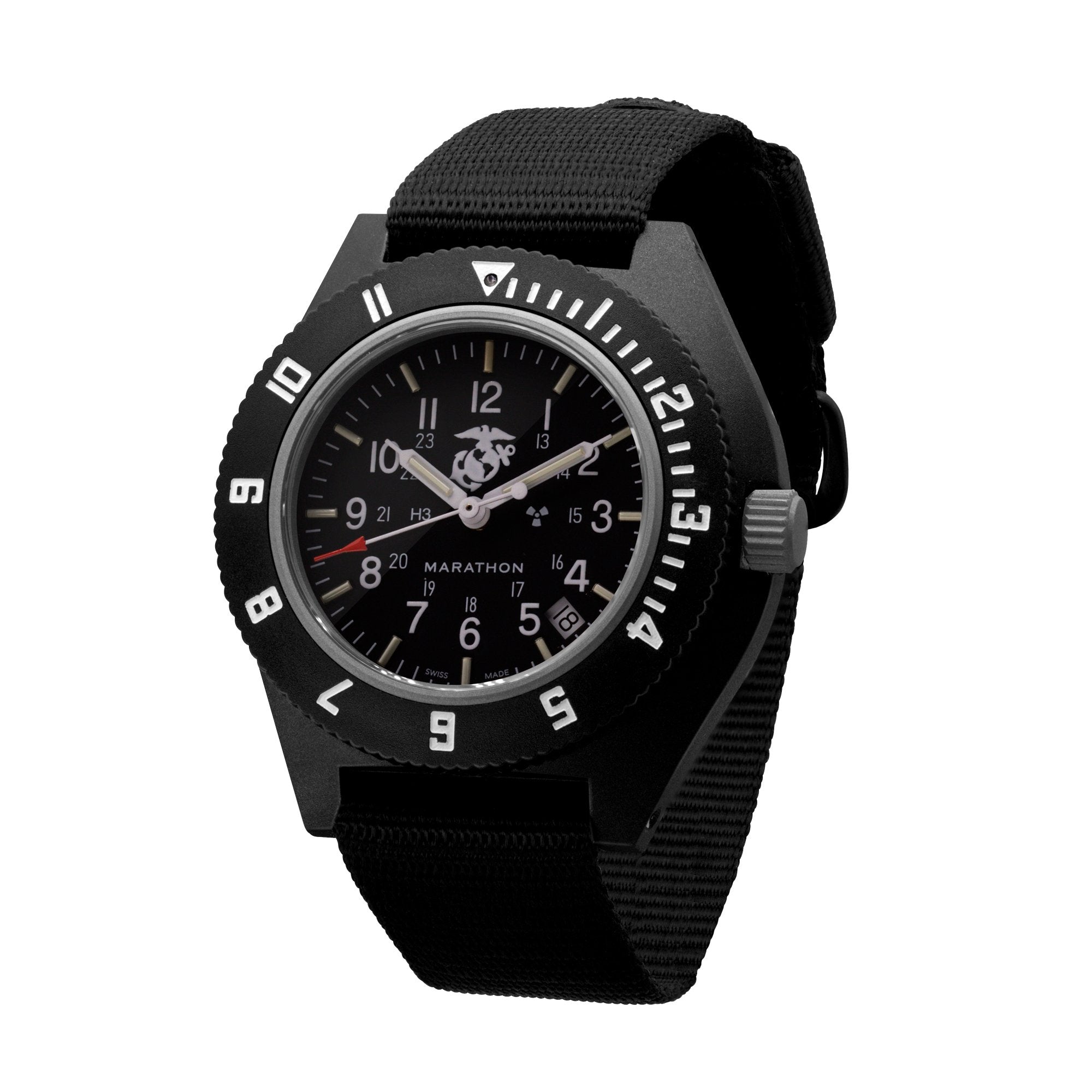 The Marathon Navigator Date: USMC is a highly accurate watch built to strict military specifications under MIL-PRF-46374G. Designed for pilots, parachutists, and law enforcement, the Military Navigator Pilot's Quartz is made to withstand the many challenges that are faced in a professional or everyday environment.