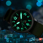 Every LÜM-TEC watch features exclusive MDV Technology, a special 8-layer application of ultra bright glowing Super-Luminova photoluminescent material. MDV hands and dials are extremely visible in all light conditions, making this watch perfect for red-eye travelers, evening joggers, and casual divers alike.