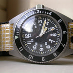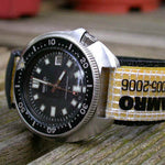 This is a genuine Velcro Volvo Ocean Race Kevlar Dive Watch Band, made in The Netherlands from the actual advanced Yacht sail material utilizing KEVLAR (used in the Volvo world ocean race) and 600 D nylon. The narrow part of the band is 20mm wide. The wide part of the band is 25mm wide and can accommodate up to a 13 1/2 inch wrist! It can easily be worn with a wetsuit or other clothing!